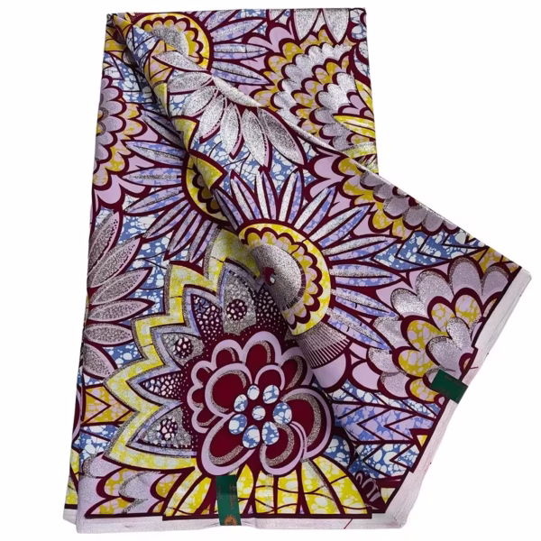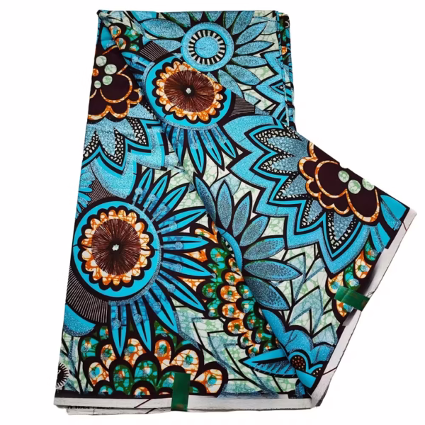 A vibrant 100% cotton African wax print (Ankara) fabric featuring bold, colorful patterns inspired by traditional African artistry. Soft yet durable, this breathable cotton is perfect for clothing, accessories, and creative DIY projects.