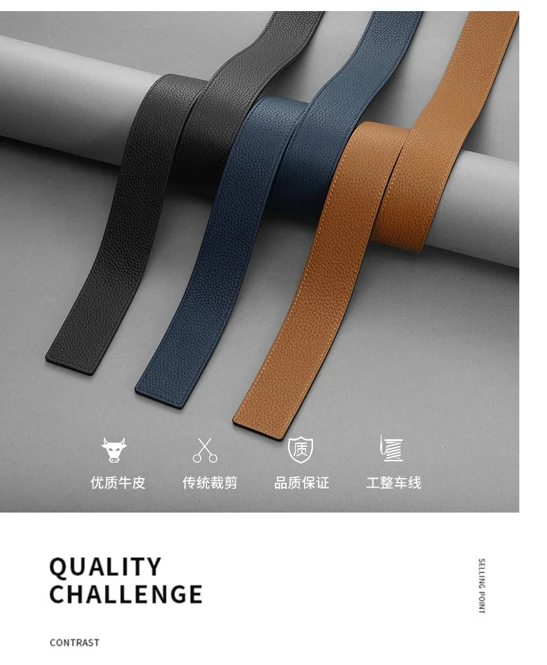 Double-Sided Luxury 4.0cm Wide Lychee Leather Belt with Extra Strap