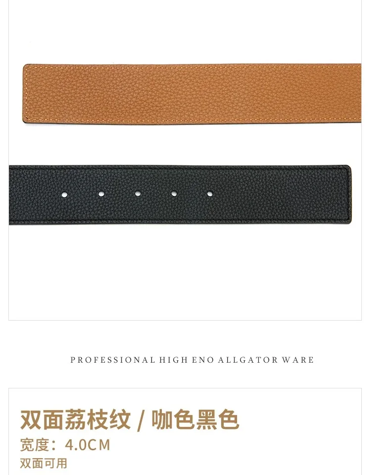 Premium Lychee-Pattern Leather: Top-grade genuine leather with a unique lychee texture for a rich, tactile finish. Double-Sided Design: Two elegant sides provide versatile styling options for any occasion. Customizable Fit: Perforated body allows you to add holes for a precise, tailored fit to your waist. Bold 4.0cm Width: At 4.0cm (1.57 inches), it delivers a striking, luxurious presence. VL Buckle Compatibility: Designed to pair seamlessly with VL letter buckles for a personalized touch (buckle sold separately).Extra Strap Included: Comes with a spare belt body for extended wear or further customization.