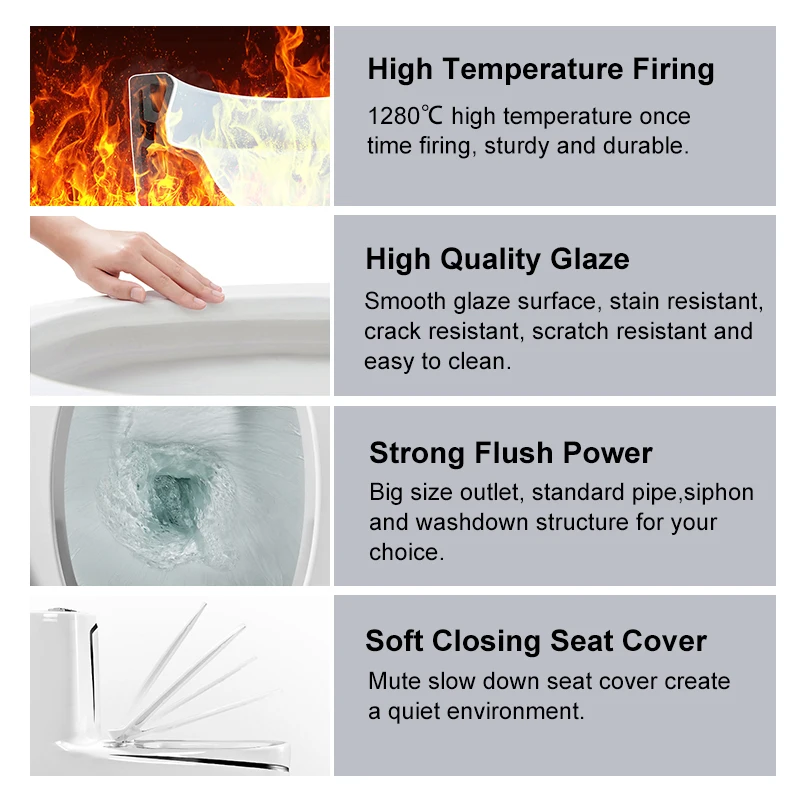 Products Description Item No.T-3002-CJGTypeOne-piece Toilet Flushing Method Washdown / Siphonic Material Ceramic Size 710x380x750mm Roughing-in S-trap, 250/300mm roughing-in; P-trap, 180mm roughing-in. Colors picture Accessories seat cover and flush fitting OEM acceptable MORE DESIGNS We provide customization service, you can custom color and patterns as you like. Please send us inquiries for more details, we will give you the best recommendation